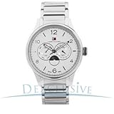 Kleid-Uhr, Japanisch Quarzwerk, poliert Silber-Ton Hände mit leuchtenden Akzenten, poliert Silber-Ton-Zahlen und Markierungen, Kleine schwarze Zahlen und Indizes, Edelstahl poliert Silber-Ton-Lünette, Edelstahl gebürstet silberfarbenem Gehäuse, Krone und Gehäuseboden poliert , 50 Meter/165 Meter wasserdicht